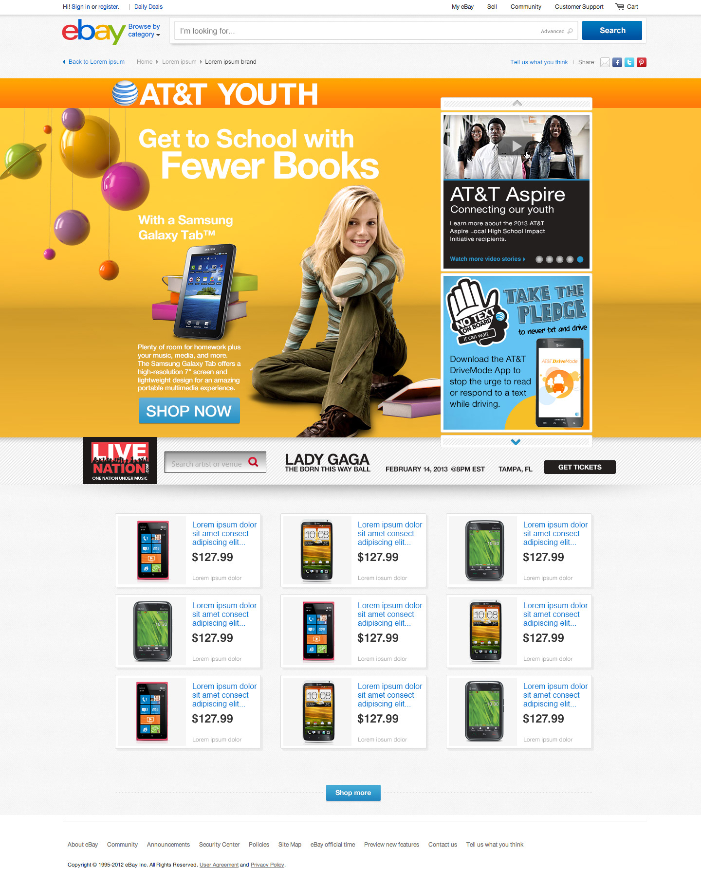 Mockup - AT&T Youth Campaign on eBay.com, includes seasonality for Back To School, Father's Day and Holiday
